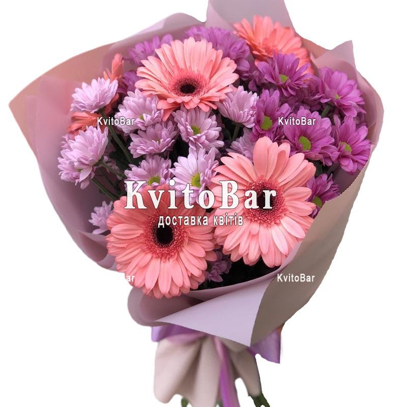 Bouquet of 4 chrysanthemums and 5 gerberas p>