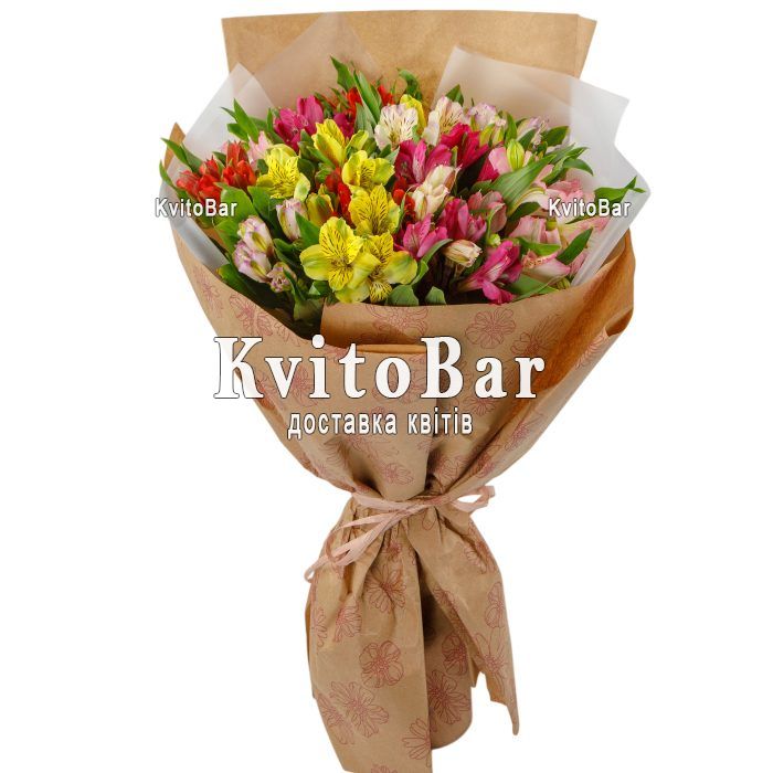 11 разноцветных альстромерий, оформление