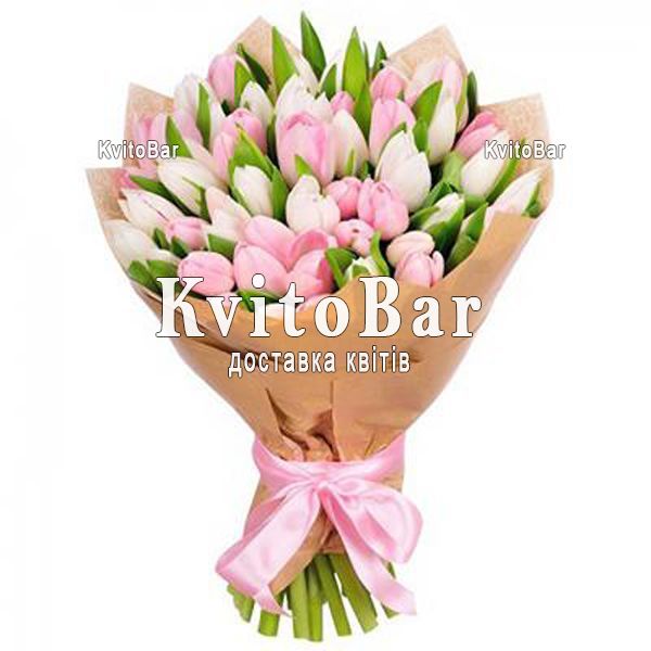 Букет розовых и белых тюльпанов
