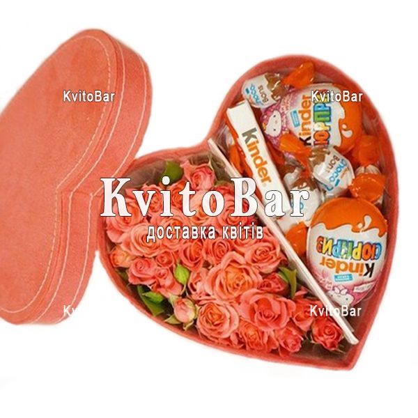7 роз, 8 кустовых роз, 2 киндера, киндер-шоколад 4 шт, оформление