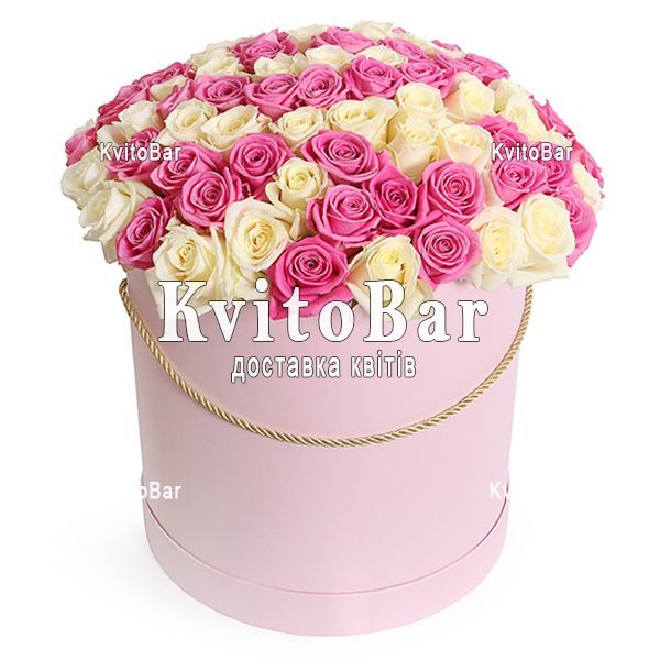 101 біла і рожева троянда, коробка