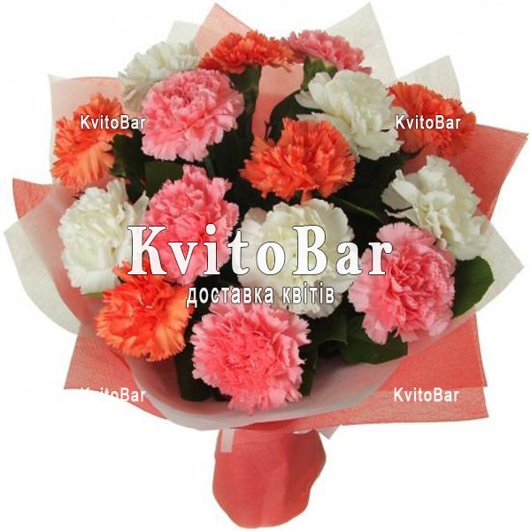15 різнокольорових гвоздик, оформлення
