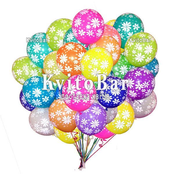 Склад:25 різнокольорових гелієвих кульок з малюнком