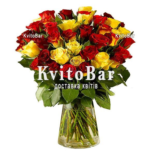 35 різнокольорових імпортних троянд, оформлення