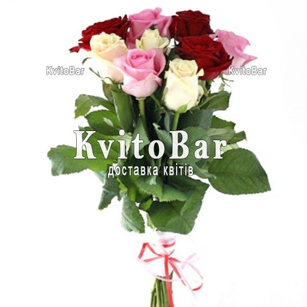 Різнокольорові троянди: 9 шт.
