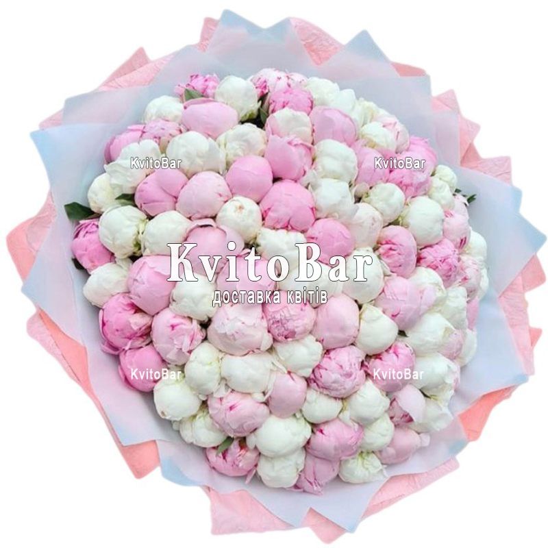 99 білих та рожевих півоній