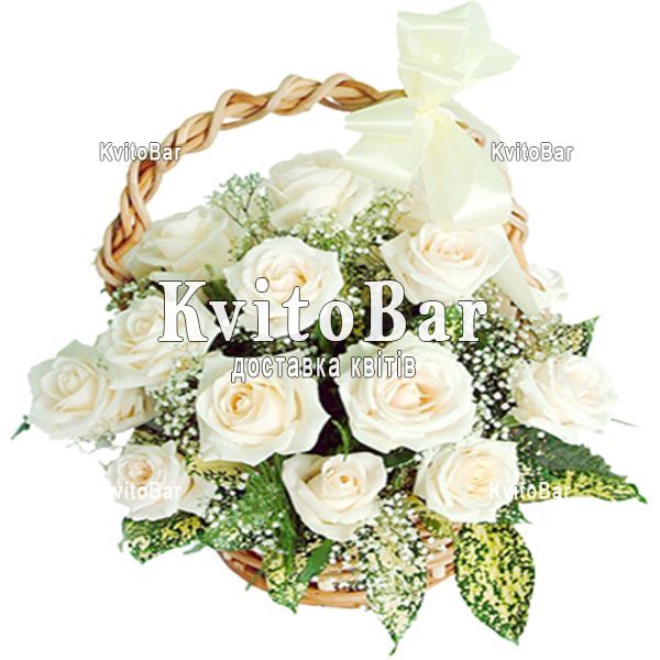 Букет 17 білих троянд у кошику