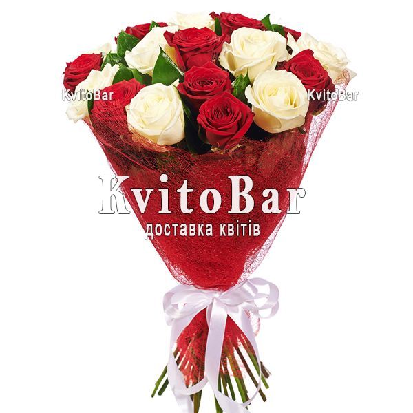 Букет із 17 червоних і білих троянд