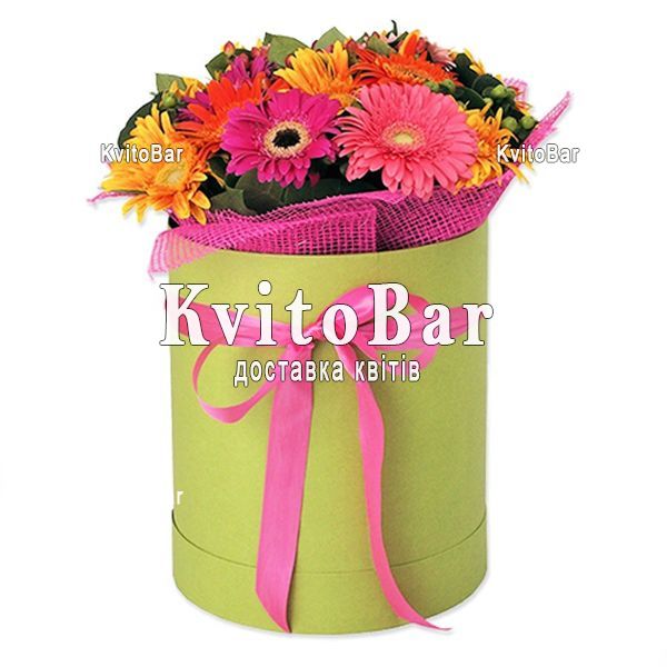 Гербери в шляпній коробці
