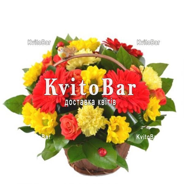 Корзина із 3 гербер, 4 троянд, 3 хризантем, 3 гвоздик