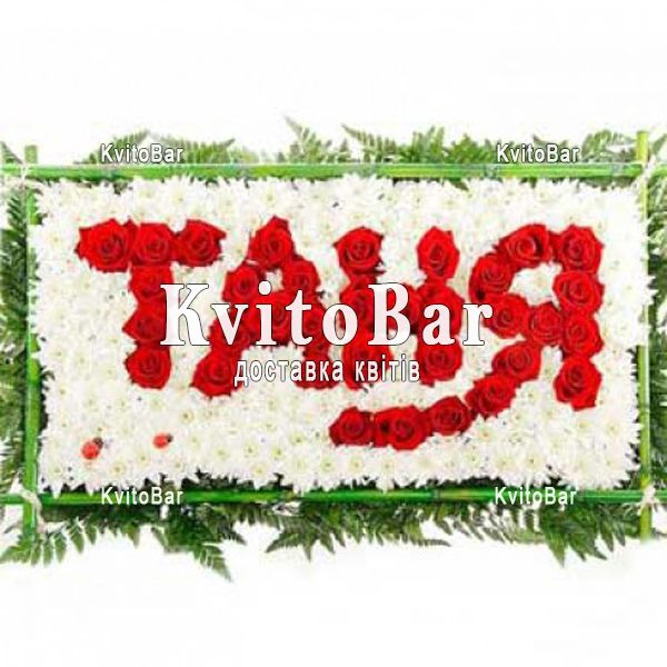 35 червоних троянд, 20 білих хризантем, зелень, оформлення
