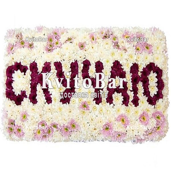 Композиція з квітів з написом СУМУЮ