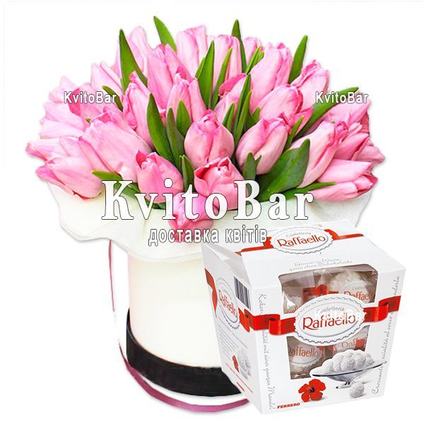 Коробка тюльпанів та рафаелло