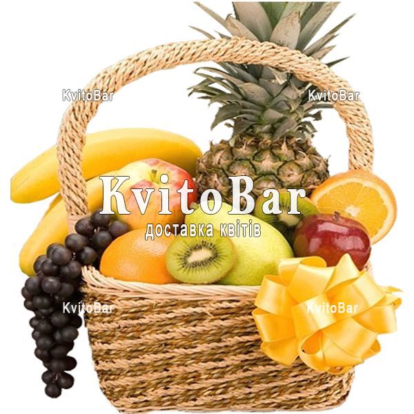 банани, 1 ананас, 1 гроно винограду, апельсини, груші, ківі, яблука
