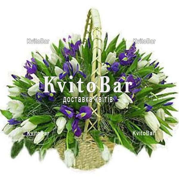 Кошик з 71 тюльпана та ірисів