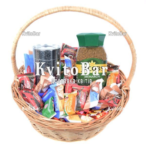 2 кг цукерок на вагу, чай чорний - 1 шт., кава розчинна 180-190 г