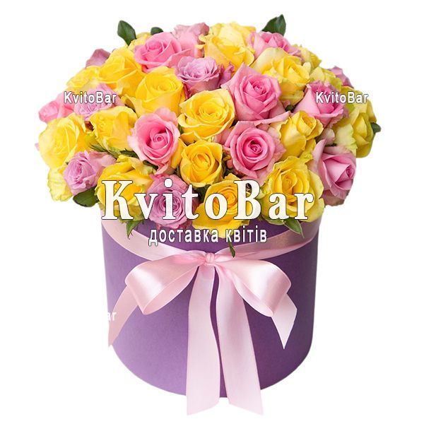 45 різнокольорових троянд, коробка