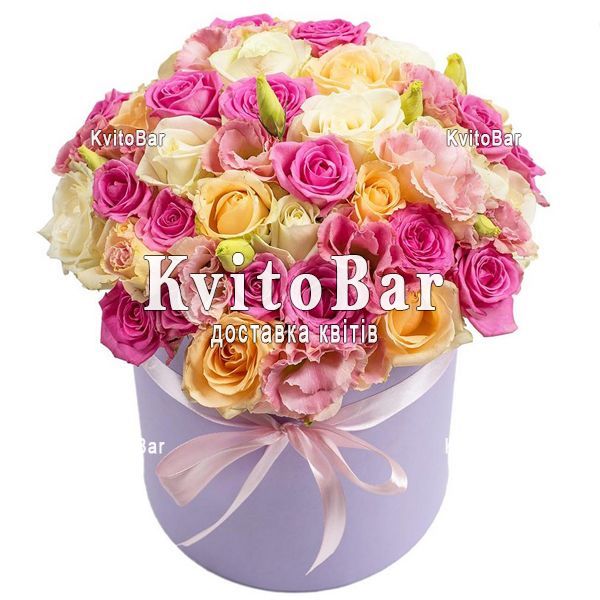 Троянди і еустоми в коробці