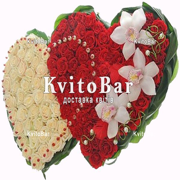 Подвійне серце із червоних і білих троянд