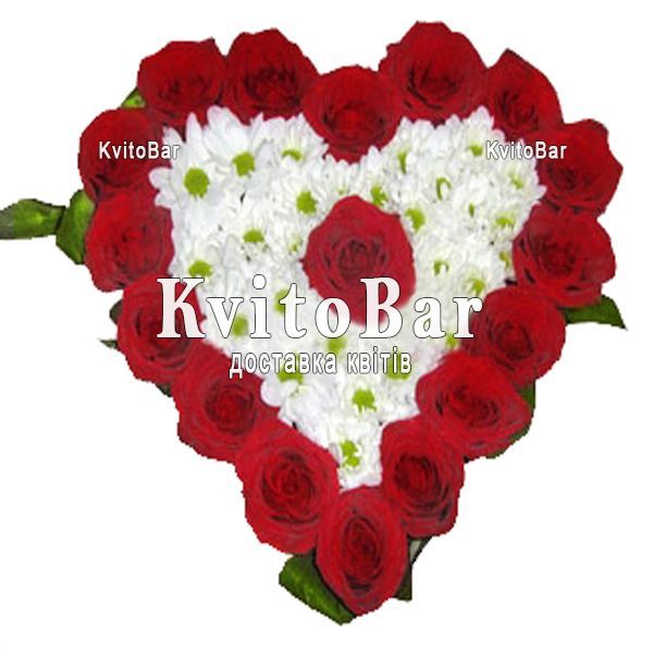 Серце з троянд і хризантем