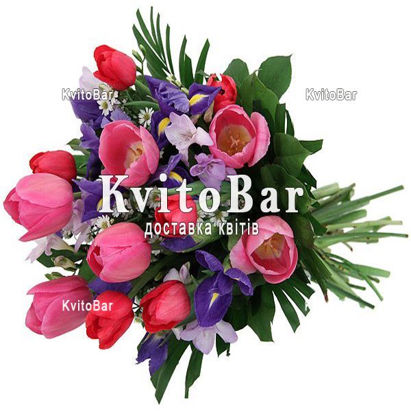 Букет із 11 тюльпанів і 10 ірисів