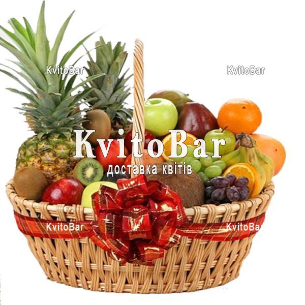 2 ананаси, кокос, апельсини, банани, 2 гроно винограду, яблука, груші, ківі, 1 манго
