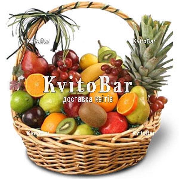 1 ананас, ківі, апельсини, яблука, груші, банани, 1 гроно винограду